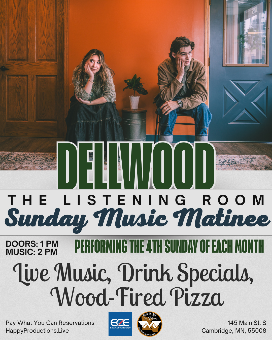 Join us on the 4th Sunday of each month for Dellwood. Dellwood is an Americana, folk, and bluegrass duo from Isanti, Minnesota, blending traditional acoustic styles with original songs and fresh takes on familiar favorites. With an engaging live set and wide-ranging repertoire, they deliver performances that connect with both roots music fans and casual listeners.